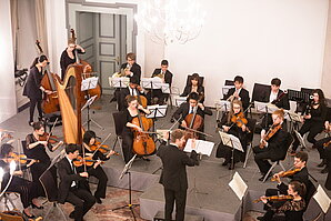 Flöte: Hannah Bernitt, Helena Warratz, Oboe: Huijing Ju, Kohei Soda, Klarinette: Alexander Haas, Anselm Schmitt, Fagott: Leon Kranich, Deborah Seifert, Horn: Jonas Gessner, Carles Chorda Sanz, Trompete: Michael Gerstenmeyer, Harfe: Cornelia Schott, Violine 1: Lutz Bartberger (KM), Aisel Esslinger, Jérôme Huy, Anna Kaufmann, Jana Kubale, Yiqi Sun, Violine 2: Kristin Hampel (SF), Franziska Bujara, Felix Cornelius, Kathrin Geisemeyer, Miriam Klüglich, Max Köhler, Viola: Frederik Koos (SF), Paulina Kiss, Karla Mertke, Felix Schreer, Elisabeth Strohhäcker, Violoncello: Hoang Nguyen (SF), Luisa Arnitz, Ruben Jeyasundaran, Kontrabass: Mengting Zang (SF), Julia Vötig